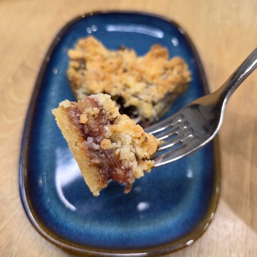 - Spread the rhubarb mixture over the baked base and sprinkle with the remaining crumble. Bake for an additional 30 minutes at 160°C (320°F) on the Bake setting. Allow to cool in the Air Fryer with the door open.